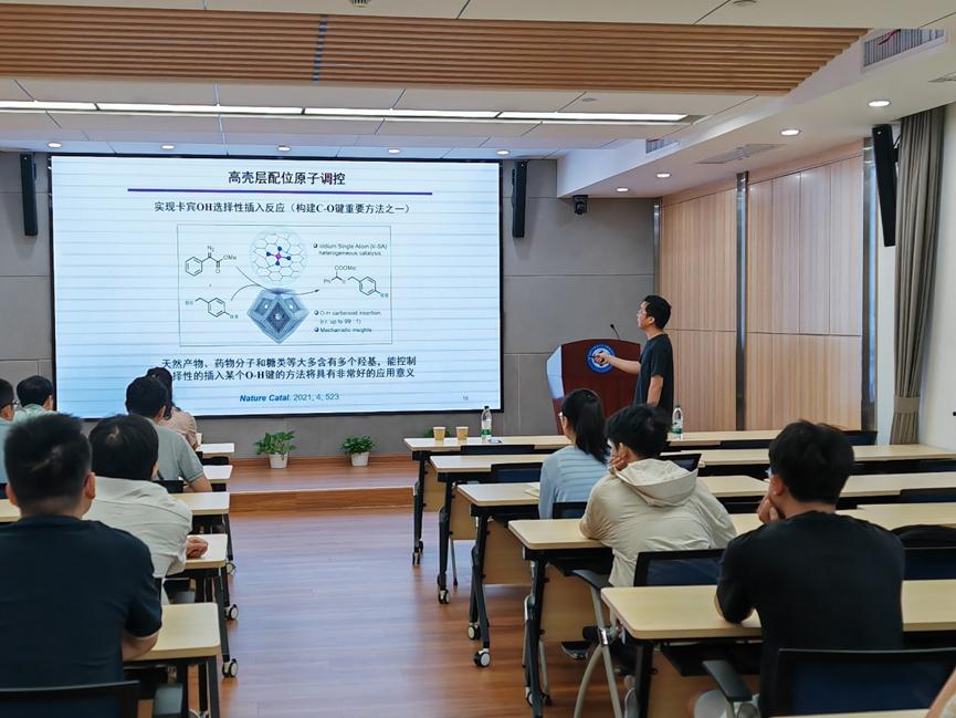 在本次报告中,王定胜教授以 “原子尺度精准合成” 为核心,系统阐述了催化材料从纳米尺度到原子级调控的研究历程,指出催化位点不均一、活性位难以精准调控是当前催化领域关键挑战,而原子级分散催化材料因金属利用率高、电子结构独特等优势为揭示催化本质提供理想体系,同时重点介绍团队开发的主客体化学策略、离子识别策略及配位聚合法等合成方法创新。此外,王定胜教授还分享了催化材料结构调控的思路,并讲述了新催化剂发现与研究的过程,展现了从思路构思到实践探索的科研路径。报告尾声,王定胜教授对研究生科研实践提出建议,强调科研需全身心投入,鼓励多尝试不同体系,勇于探索新材料与新反应,在实践中积累经验、寻求突破。