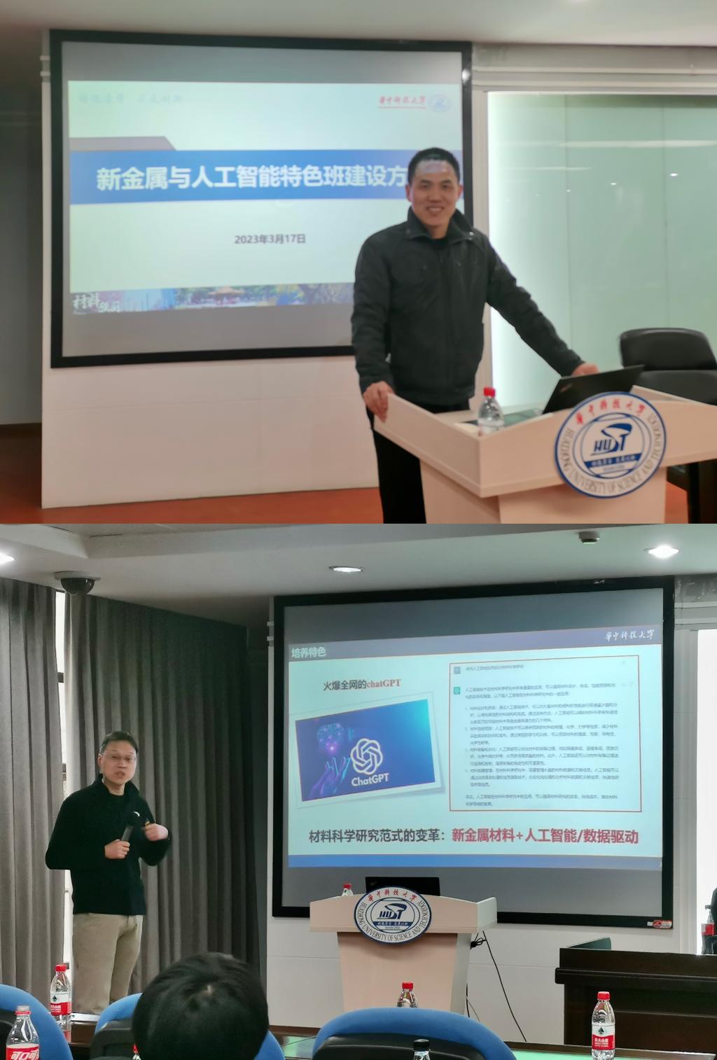 (通讯员 张诚)2023年3月17日中午,新金属与人工智能特色班新生见面会活动在Wisco联合实验室403报告厅顺利举行。活动由首届特色班班主任单斌教授主持,特色班负责人张诚教授、杜纯老师、孙明翰老师和武汉工程大学威廉williamhill段献宝副教授等参加。