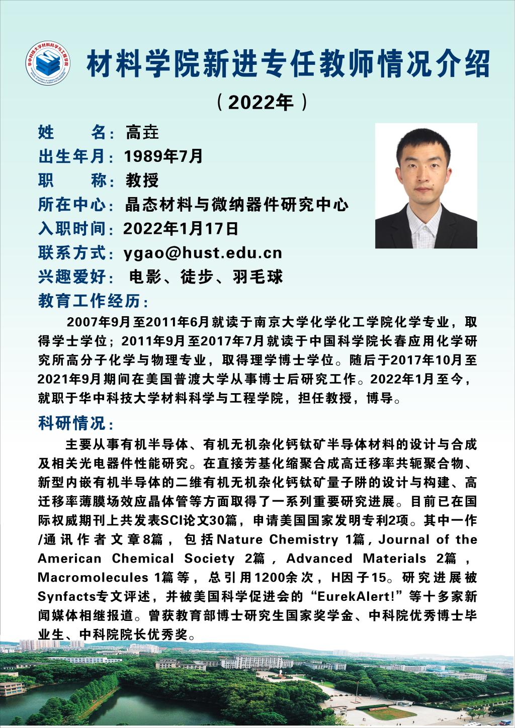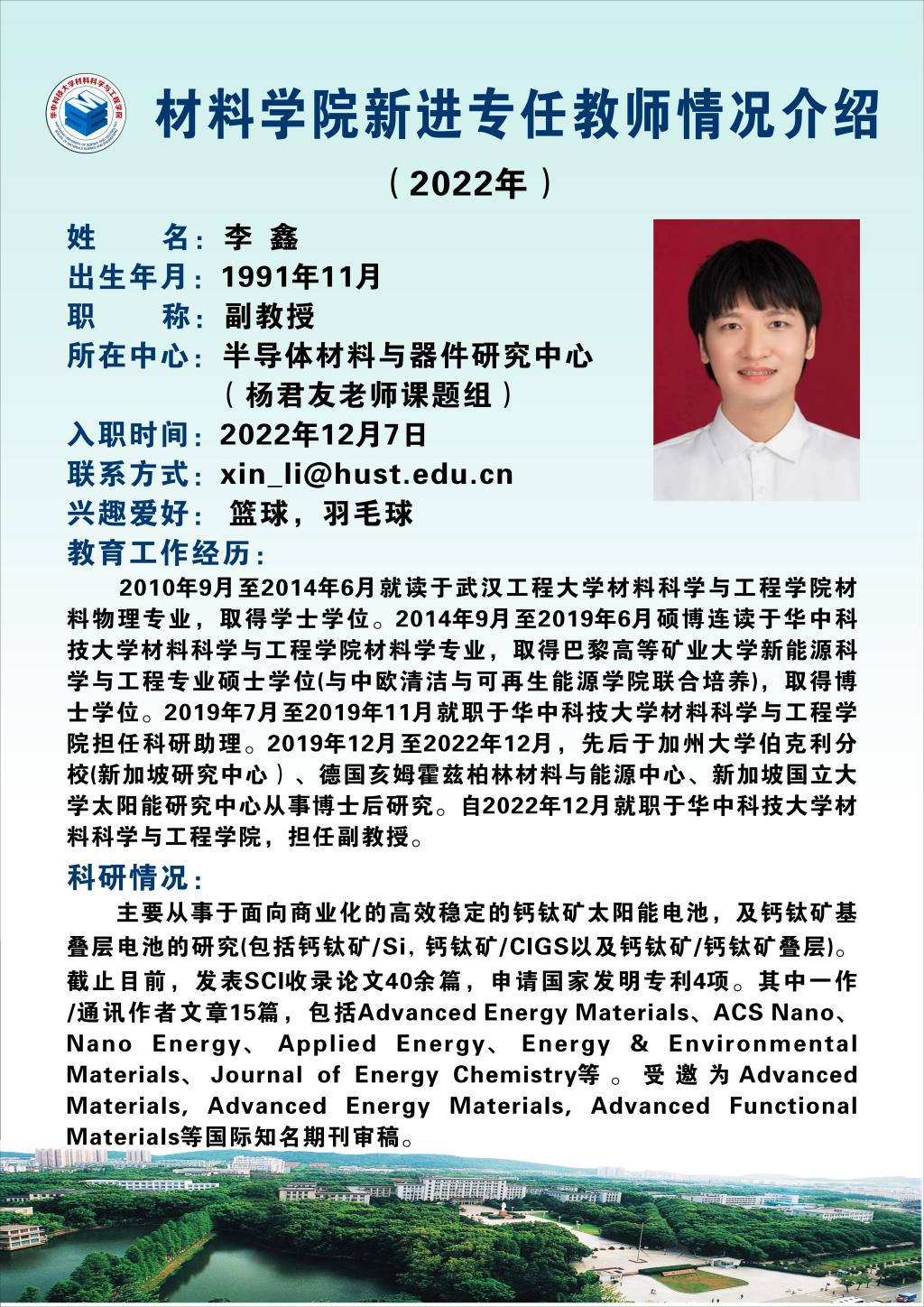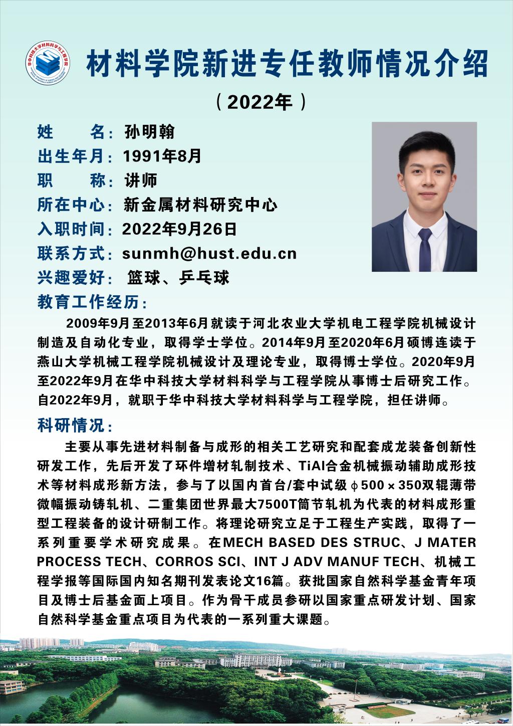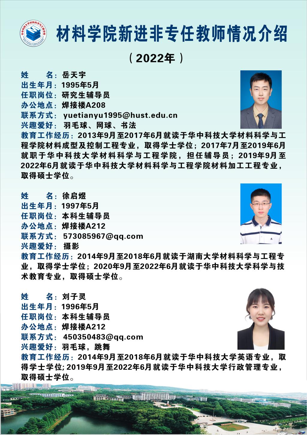 为增进大家对新进教师的了解,方便进一步沟通联系,现将材料学院2022年新进教师的情况介绍海报展示如下: