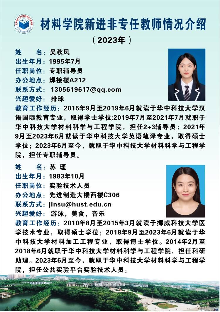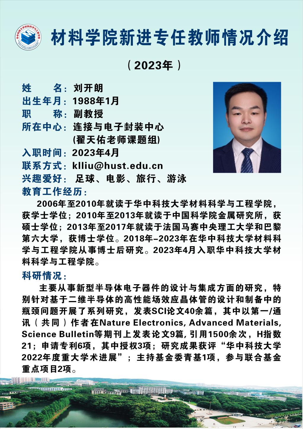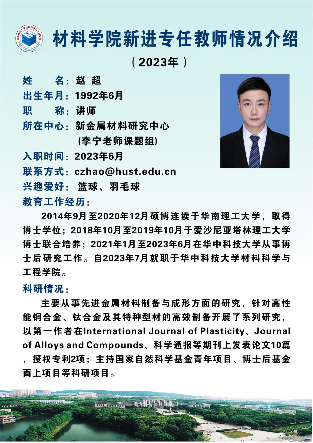 为增进大家对新进教师的了解,方便进一步沟通联系,更新材料学院2023年新进教师的情况介绍如下: