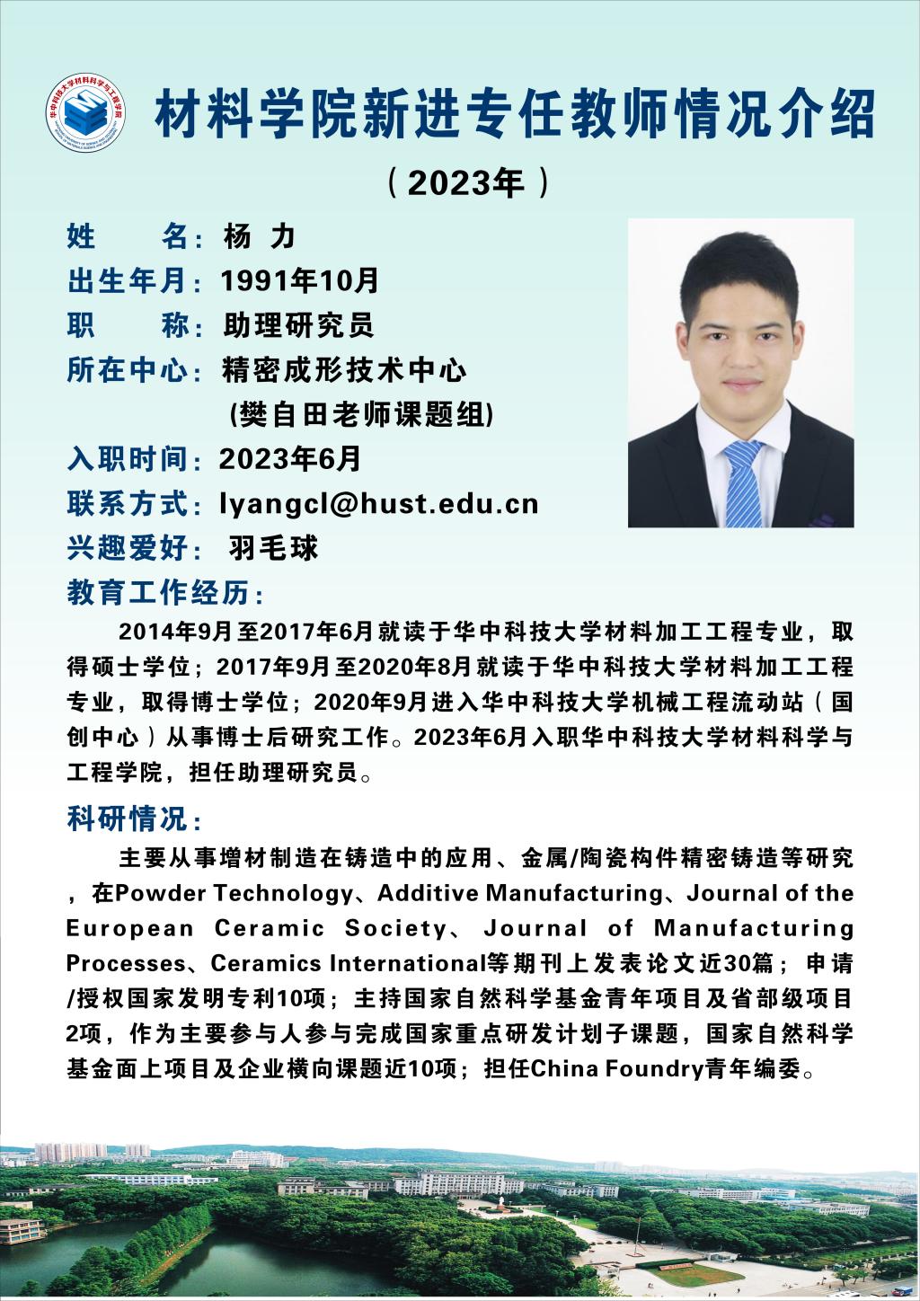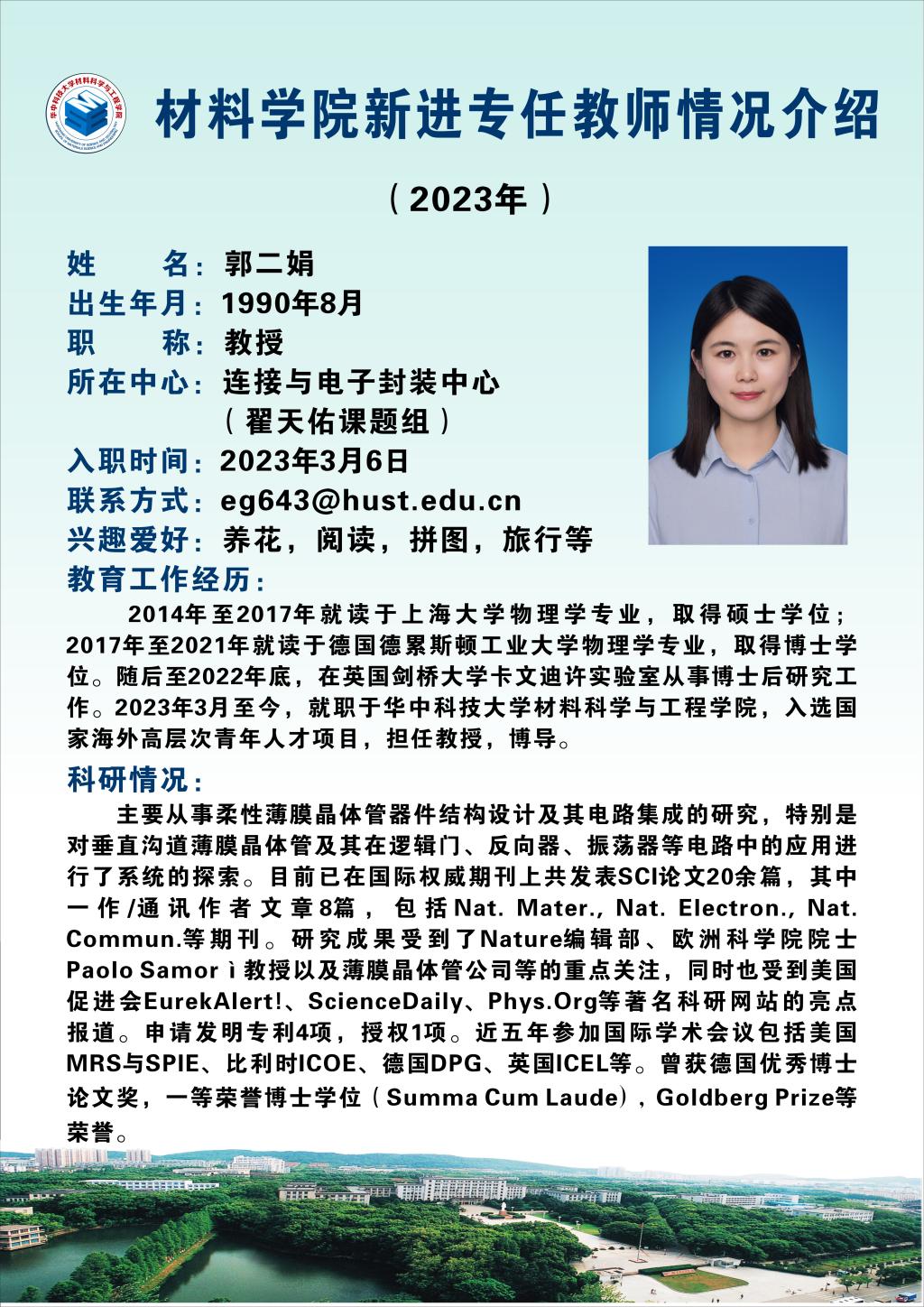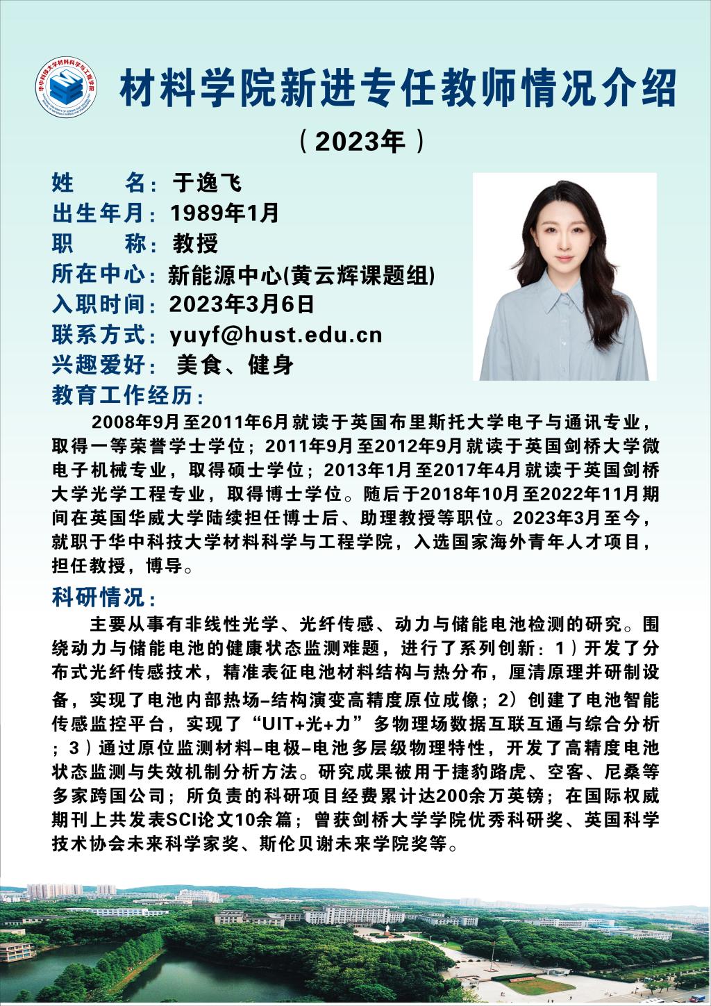 为增进大家对新进教师的了解,方便进一步沟通联系,更新材料学院2023年新进教师的情况介绍如下: