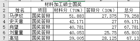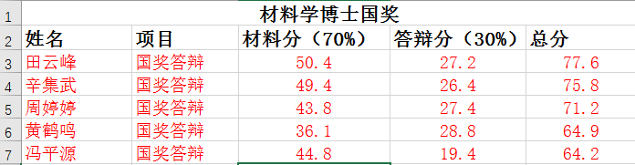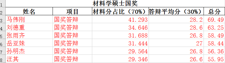 材料学硕士(6名):