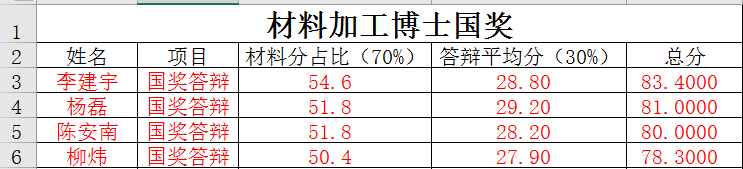 材料加工博士(4名):