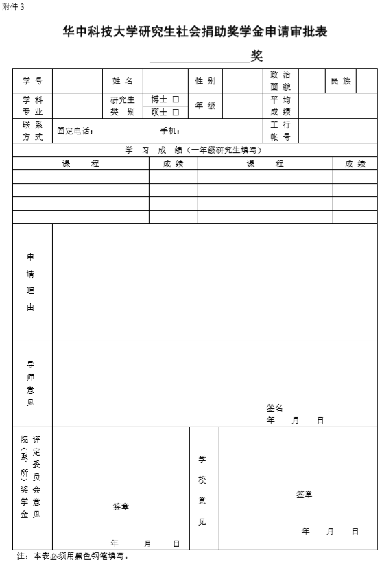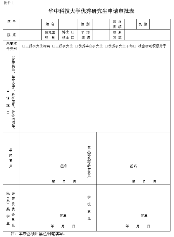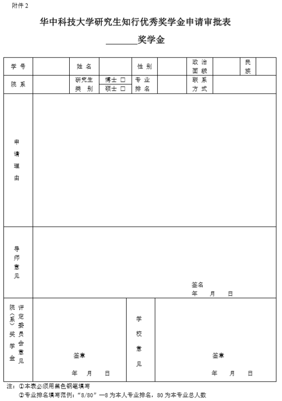 (八)各院(系、所)必须严格按照我们所提供的各种表格填写,不得随意更改样 式和内容。 (九)相关链接:http://gszz.hust.edu.cn/(研究生资助网)。