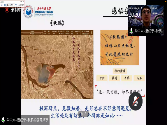 在历时六小时的决赛答辩中,我院五组选手的作品充分体现了科学技术和文学艺术的高度结合,不仅表现出高超的微观表征技术,更表达了同学们对科研工作执着追求的创新精神,特别讴歌了疫情防控中的人民英雄,赞颂了伟大的祖国。