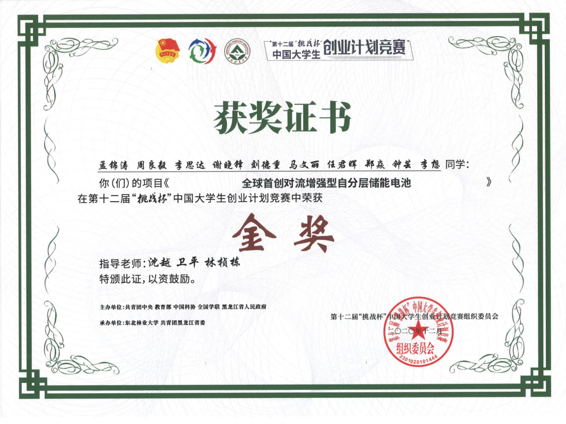 2020年第十二届“挑战杯”中国大学生创业计划竞赛全国金奖