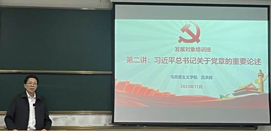 党课的第二讲由吕洪良老师为同学们讲授了《习近平总书记关于党章的重要论述》。吕老师首先从各个方面讲述了中国共产党章程的地位、作用,指出认真学习党章,严格遵守党章是党员应尽的义务,然后为同学们详细介绍了党章修改的历程及其历史意义,他告诉同学们要熟知党员的八项义务和党员的八项权力