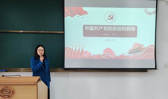 党课的第三讲由方芳老师为同学们讲述了《中国共产党的宗旨和纲领》。课堂开始,方老师向大家提出了两个问题,党的性质是什么?党的指导思想是什么?课堂中,方老师从基本概念入手,向大家由浅入深地阐释了党的纲领,从广义和狭义两方面剖析了党的纲领,让同学们对党的纲领有了更加深刻的了解。