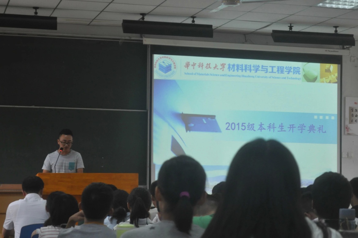 2015年9月4日上午9时许,材料学院2015级本科生开学典礼在东十二楼F101室举办。到会的领导老师有:分管教学的副院长樊自田教授,学院党总支副书记黄贝娜老师,博士生导师胡先罗教授,15级辅导员易幸存老师等。2015级材料学院全体新生参加。