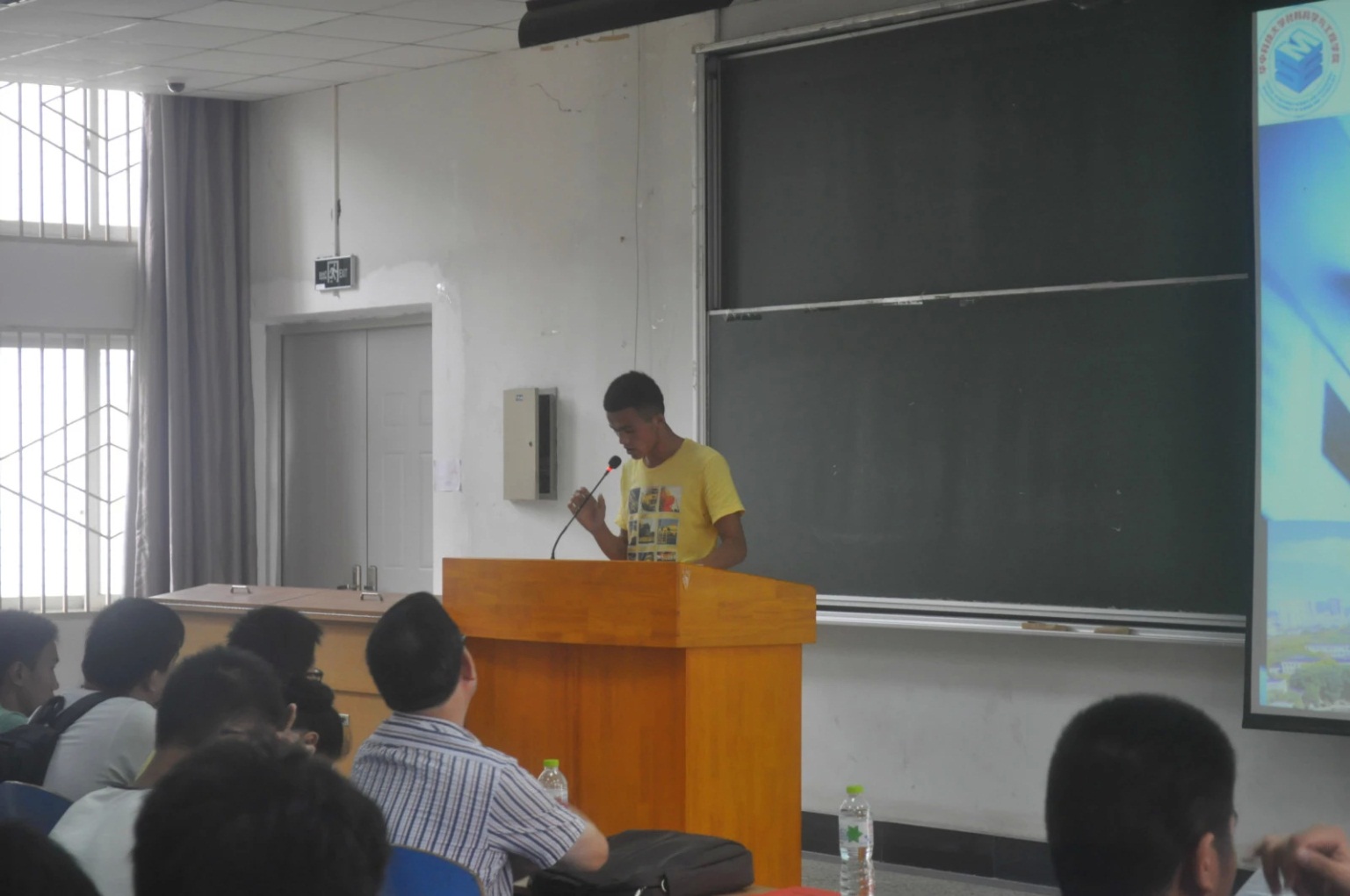 随后是老生代表团学联主席覃进发言。覃进代表辈们向新生表示了热烈欢迎,欢迎他们来到温暖的材料大家庭。这让刚刚离开父母无微不至照顾的新生们感受到了学院及学长们的关怀。