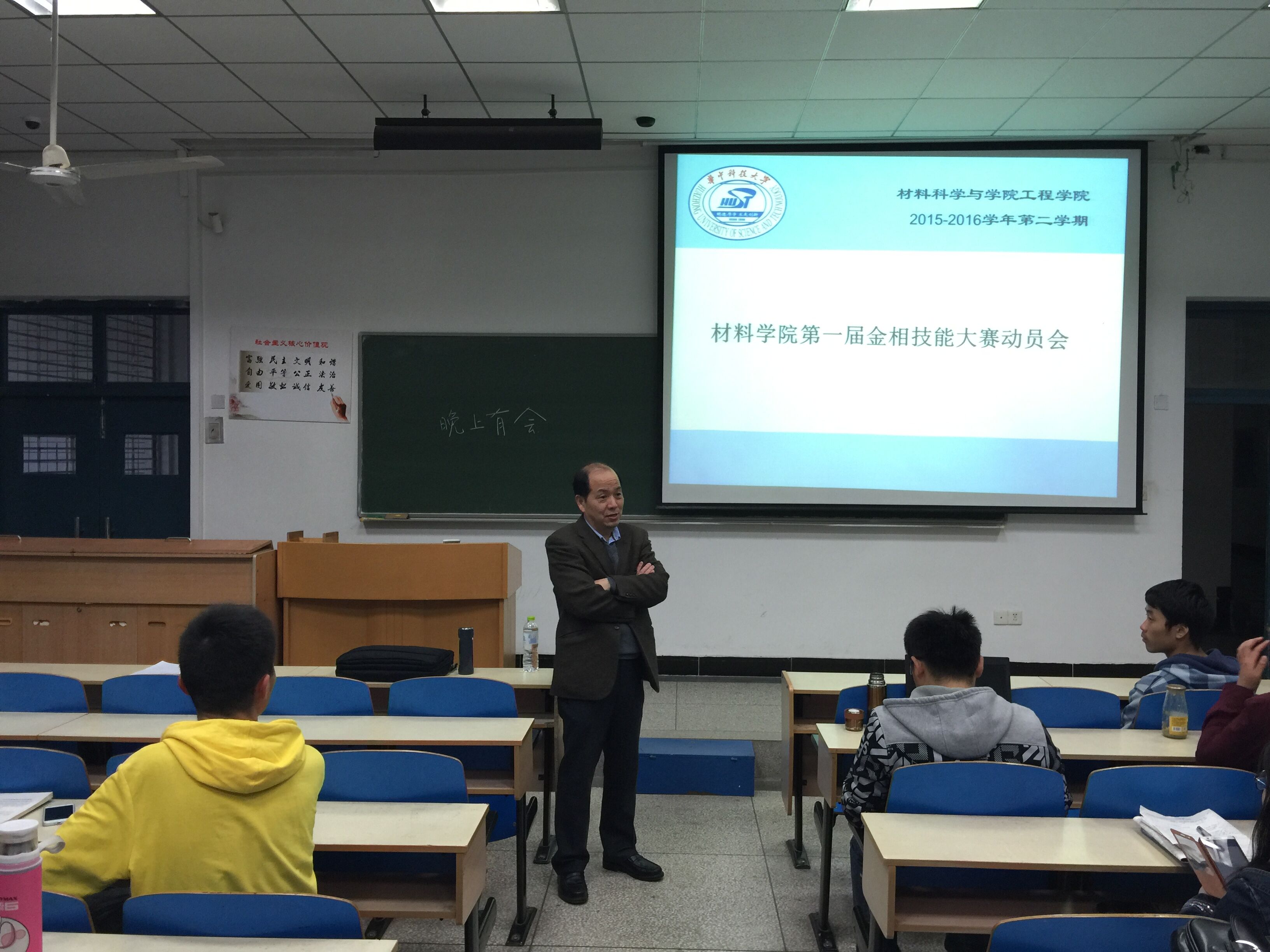随后,肖建中解读了第四届金相大赛的大赛内容,大赛主要分为金相大赛以及综合技能大赛,并有理论考试,复赛和决赛,并对比赛中需要注意的相关技术问题进行了讲解。最后,肖建中还为同学们说明了赛程安排,希望同学们精心准备,积极参赛。