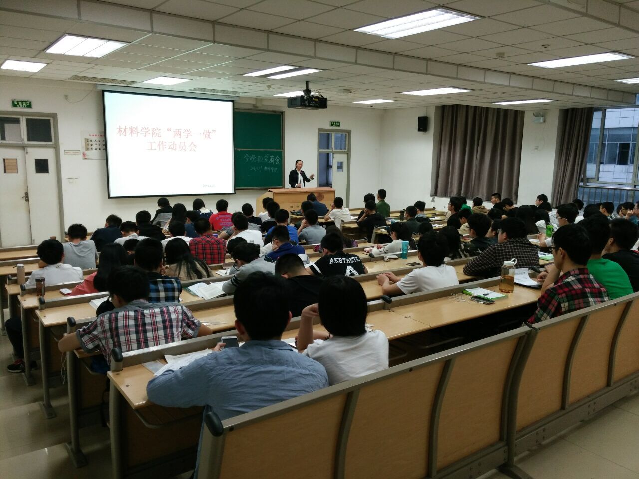 (通讯员 陈琳)为了加强对党员“两学一做”教育学习的重视,传达学校党委对“两学一做”工作实施的具体安排和要求,4月27日晚6:30,材料学院“两学一做”工作动员会在东九C401召开,材料学院党委副书记黄贝娜、材料学院辅导员李婷,材料学院辅导员易幸存及材料学院本科生党员出席了此次动员大会。会议由辅导员王黎主持。