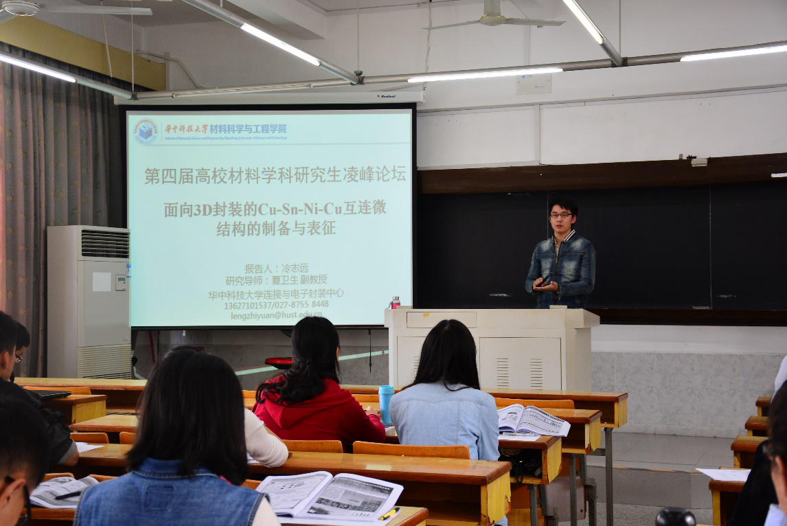 材料学院15级硕士冷志远和14级硕士田文扬参与本届论坛。并以“面向3D封装的Cu-Sn-Ni-Cu互连微结构的制备与表征”进行会议报告,与其他高校代表进行交流。