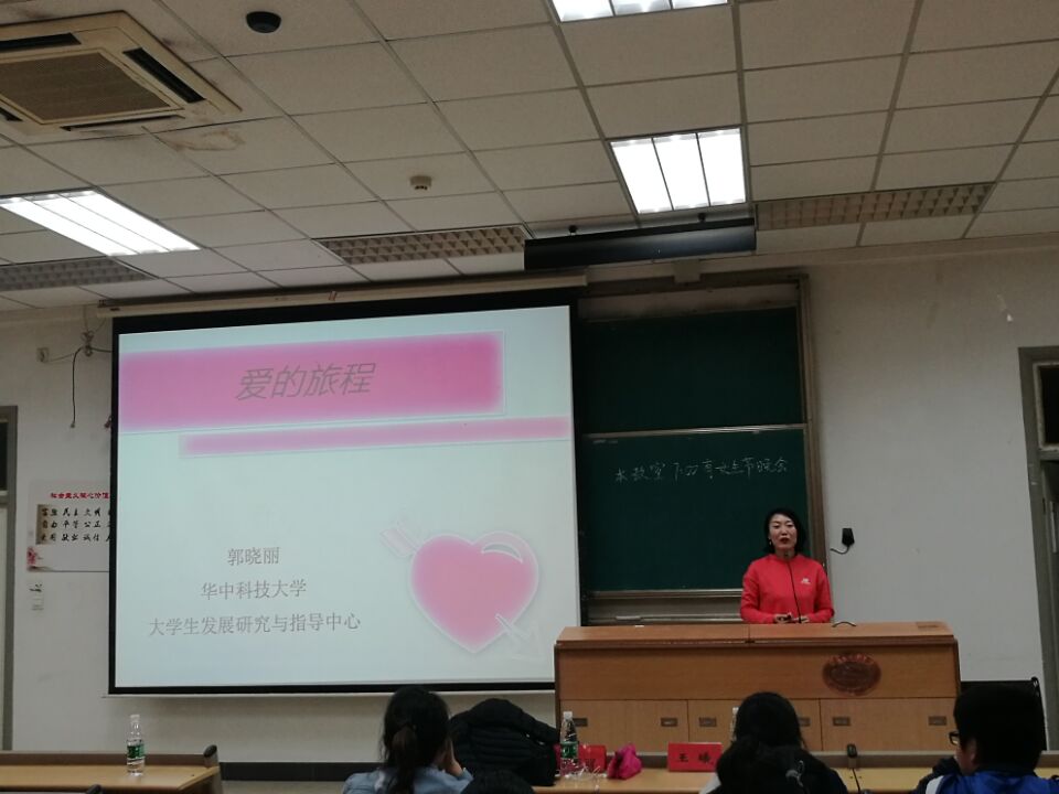 (通讯员胡泉、肖欢)2017年3月10日晚19点,材料学院女生节活动之“爱的旅程”爱情心理学讲座在东九B103教室成功举行。本次讲座由材料学院研究生辅导员王曦特邀校大学生发展与指导中心副主任郭晓丽老师,与材院女生们共话“爱情心理学”方面的话题。