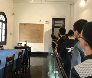 在辛亥革命武昌起义纪念馆内,党支部成员们首先参观了鄂军都督府的谋略会议室和武昌起义历史文物陈列馆。还原历史的桌椅陈列,蓝色复古的桌布,绿色的台灯帽,挂在墙上的泛黄地图,这一切仿佛带领同学们回到了武昌起义的时期,不难想象在这个房间曾经充满的革命先烈制备战略时的紧张气氛。