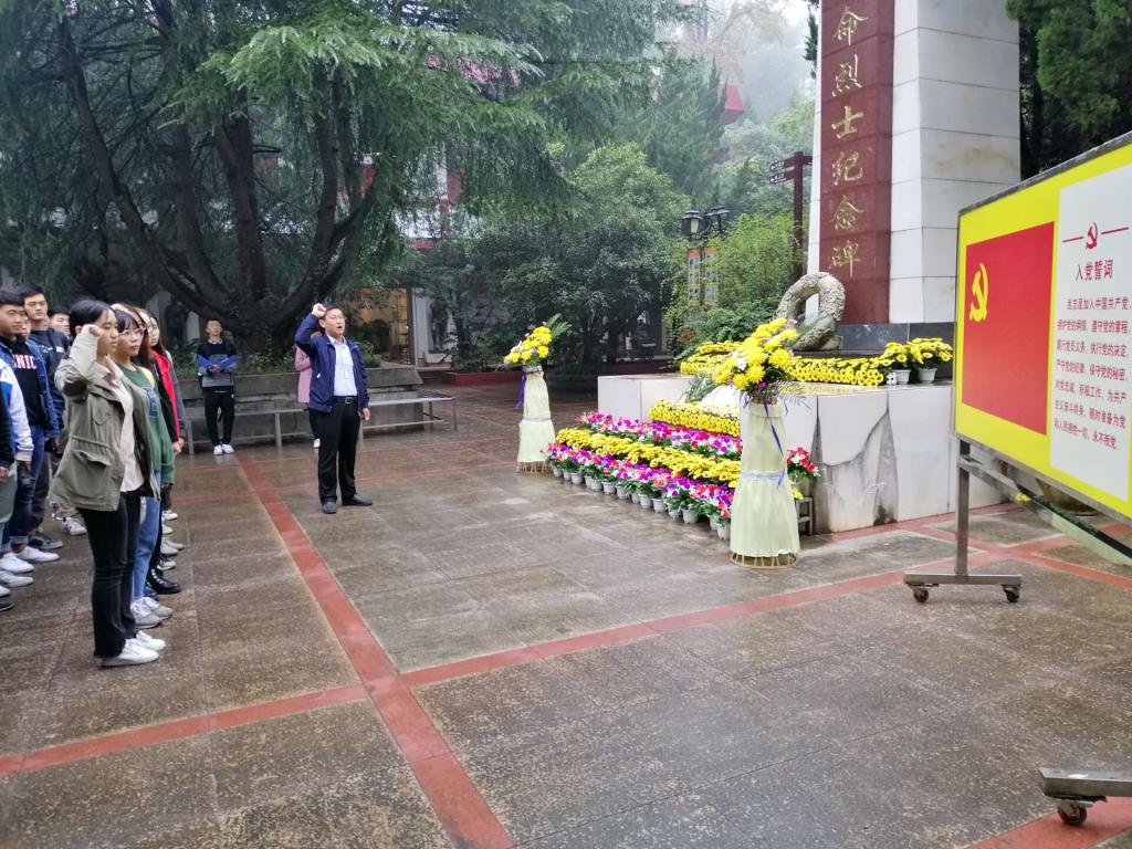 (通讯员 陈书田 罗江海)10月21日,材料学院组织40余名学生党员和预备党员赴武汉市九峰山烈士陵园开展教育活动,缅怀革命先烈,举行入党宣誓仪式。材料学院党委副书记蒋文海参加了此次活动。