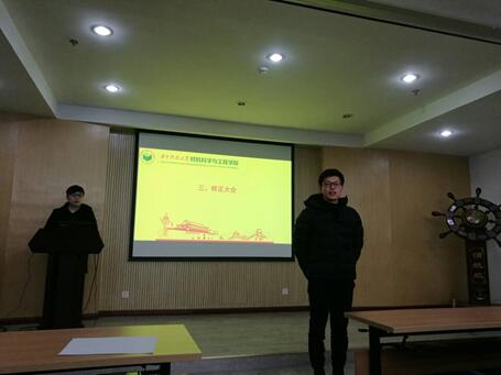 (通讯员:张帆)2018年12月20日晚,材料学院研究生党员转正大会在先进制造大楼A308成功举行,本次转正大会围绕“接受新党员,发展预备党员”这一主题而召开,大会由研究生工作组王曦老师和党建德育助理李方伟主持。
