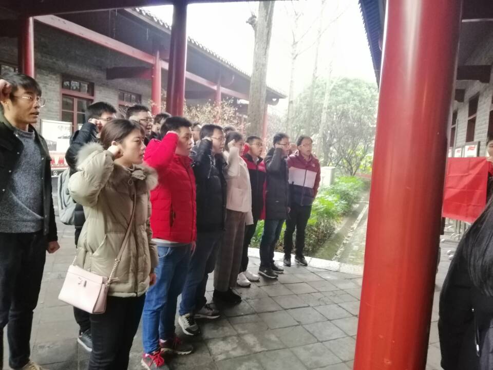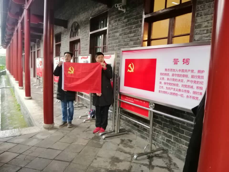 2018年12月22日,本次转正的17名党员在研究生工作组的安排下前往武汉革命博物馆参观学习,并举行入党宣誓活动。当天下午,党员同志们来到武昌农讲所,在讲解员的引导下,同志们怀着肃穆敬仰的心情参观了当年农讲所学员们学习生活的地方。在农讲所大教室的长廊中,全体党员同志坚定的举起右手,面对党旗庄严宣誓,重温入党誓词。