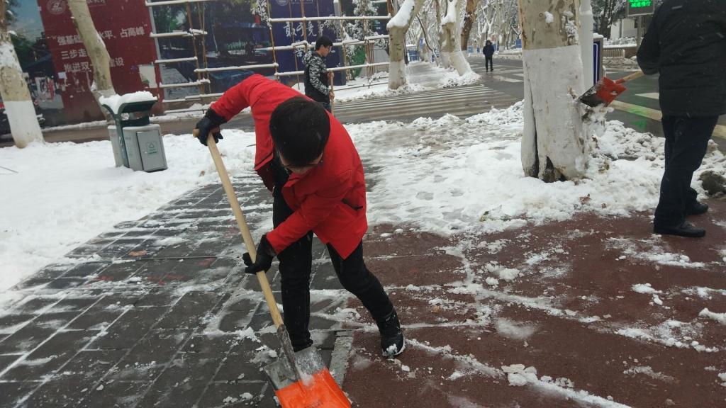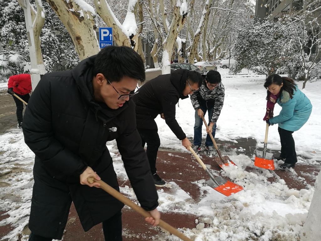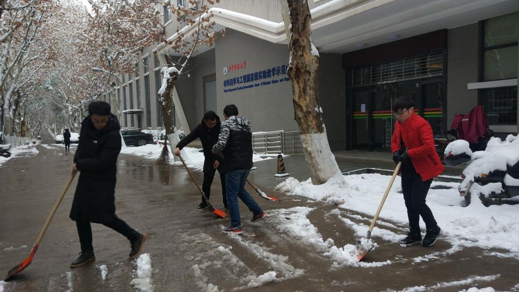 (通讯员:王曦 )2018年12月30日,赶在年末,武汉下起了大雪,整个校园银装素裹,纷飞的雪花为大家带来了美景和欢乐的同时,道路的积雪、结冰给师生的安全出行带来了极大的不便。为了方便师生的出行,保障出行安全,12月30日下午,在学院研究生工作组老师的组织下,材料学院研究生党员和研究生会干部发挥先锋模范作用和奉献服务意识,开展了义务除雪活动。