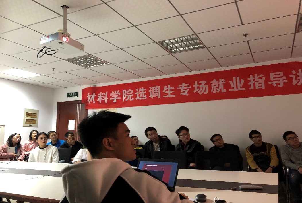 (通讯员:谭川茜)为加强材料学院学子对选调生的了解、切实提高对选调生工作的直观认识、进一步熟悉基层工作的内涵,材料学院研究生工作组和研究生会于2019年11月8日在先进制造大楼西楼C412举办了选调生专场就业指导活动。校选调生发展协会成员林彦彬和蒋承钰等同学应邀参加本次活动。