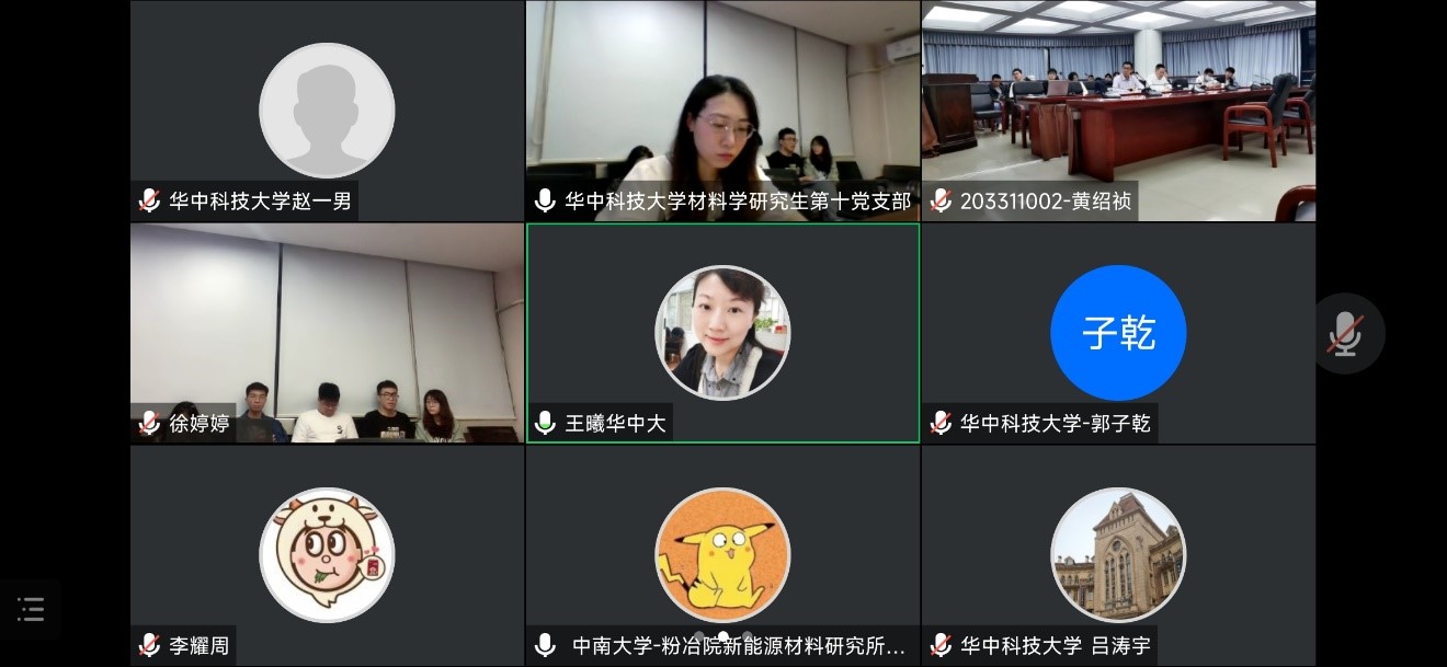 活动伊始,由william威廉中文王曦老师致开场词。在共产主义青年团成立100周年的重要时刻,两所学校的党员同志冲破疫情阻隔,相聚云端,共话科研创新,是一次互相学习、互相交流的好机会。王曦老师激励新时代的材料人,生逢其时,重任在肩,应当继承发扬五四精神,踔厉奋发,笃行不怠,心系国是校史院史事,共学共创共发展。