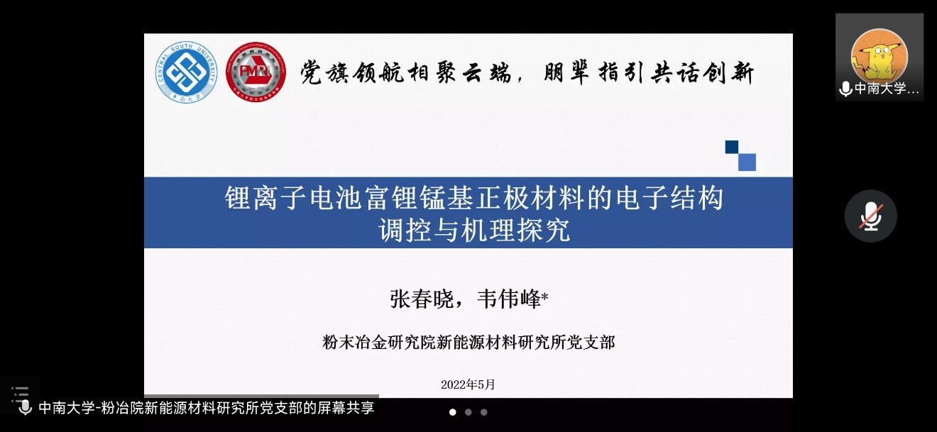 为加深校际交流,培育青年党员坚定理想信念,筑牢信仰之基,聚焦主责主业,增强科研能力,2022年5月18日william威廉中文材料学研究生第十党支部与中南大学粉末冶金研究院新能源材料研究所党支部开展联合党日活动。