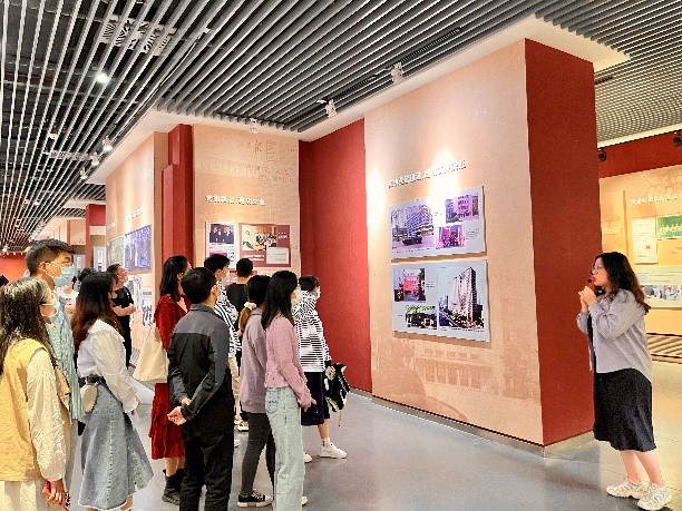 参观过程中,各位同志仔细浏览珍贵的历史资料,时而驻足浏览,时而拍照记录,收获颇丰。田欣悦同志说道,校史馆的那一抹红色鲜艳夺目,它所讲述的历史厚重有力,在这里我不仅学习了华科诞生前的历史,也了解了华科的风云人物。夏欣妍同志说华中大尊重人才,尊重科学,一个尊重知识尊重人才的大学,自然也会被历史所尊重。参观结束后,全体同志在校史馆外合影留念。