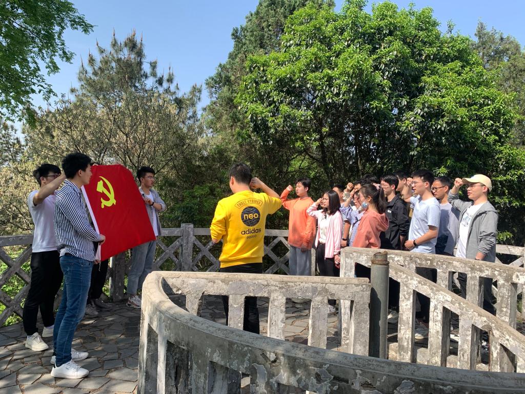 经过近半个小时的登山之行,支部成员来到了山顶碉堡处,在参观完碉堡后,全体成员在刘天琪的带领下,重温入党誓词,面对党旗庄严宣誓。刘天琪勉励支部成员不忘共产党员的初心使命。