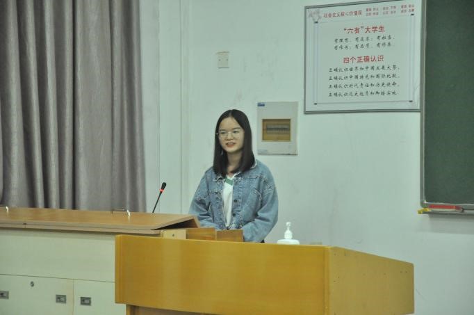 班长吴泽楷为同学们介绍四史发展脉络,强调了习近平总书记所说的“历史是最好的教科书”,引领同学们深刻认识中国革命史的现实意义,了解祖国发展不易,倡导同学们从历史中汲取知识经验、培养爱国情怀。
