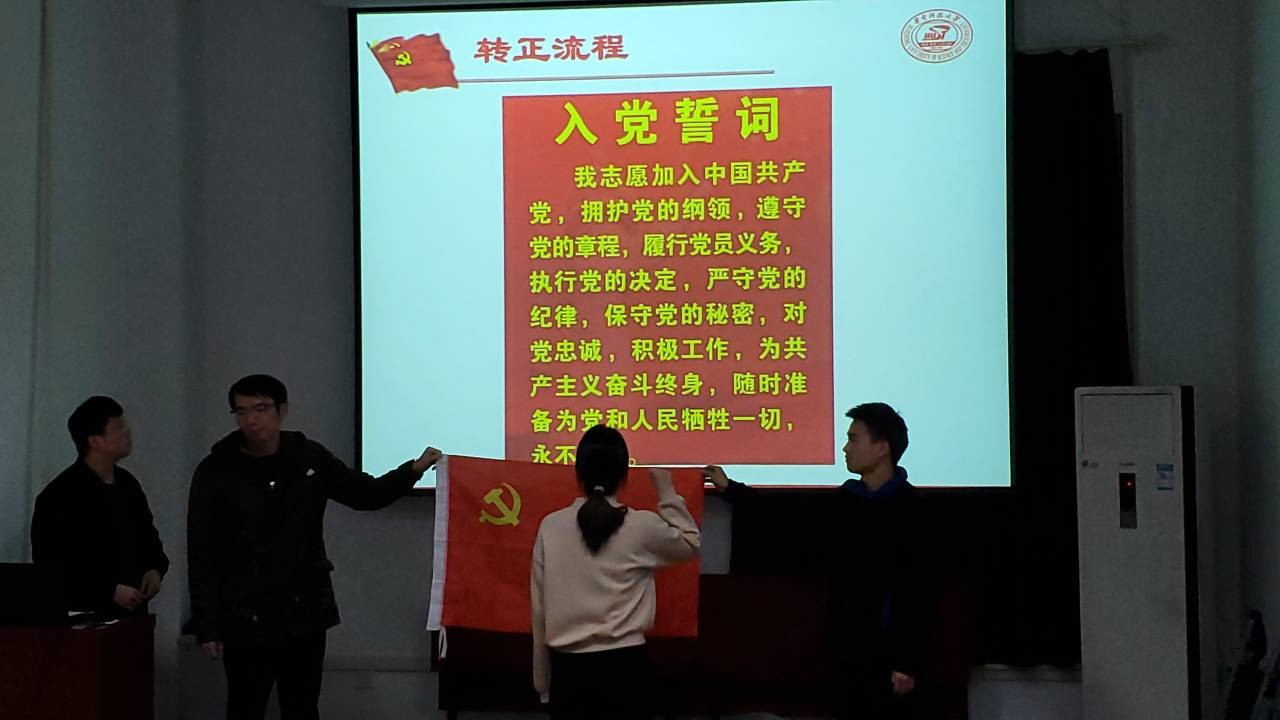第二部分是材料学第四党支部刘然同志的转正大会,党支部书记王人焱主持,书记严格按照转正流程逐项完成,并添加一个预备党员重温入党誓词的环节,反复强调入党誓词对每个党员的重要性。在发表意见环节,支委会及与会党员对刘然同志高度评价,最后与会党员全票通过刘然同志转为中共正式党员的申请。
