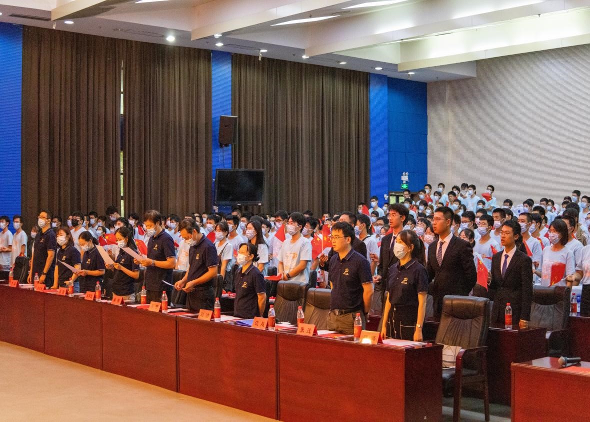 典礼在庄严的国歌声中拉开序幕。随后,副院长樊自田宣读聘任教师班主任决定,院领导为2022级全体教师班主任颁发聘书,院长周华民为2022级各班授予班旗。