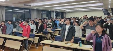 活动开始前,参会全体成员起立,举起右手,握紧拳头,在领誓人的带领下庄严宣誓。通过宣誓,全体成员更加全面认识自己的党员身份,明确党员义务,不忘初心、牢记使命,坚定继续奋斗的决心。