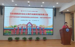 郭乙同志从中国共产党与中国高等教育的历史回眸、习近平总书记关于高等教育的重要论述和新时代新征程上青年大学生的使命担当三个方面展开讲述,得出“只有坚持党对高等学校的全面领导、坚持社会主义的办学方向,才有可能办好人民满意的教育”的结论,并呼吁广大青年要坚定不移听党话、跟党走、怀抱梦想又脚踏实地,敢想敢为又善做善成,立志做有理想、敢担当、能吃苦、肯奋斗的新时代好青年。
