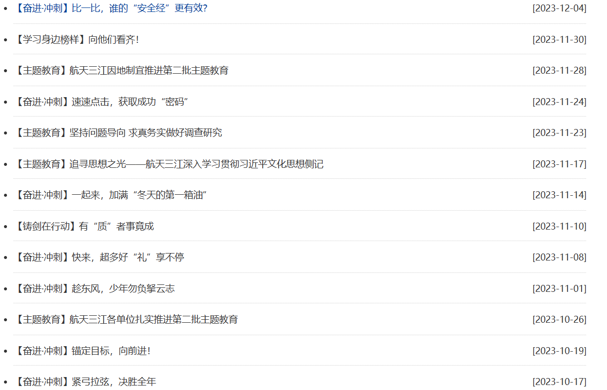 奋进新征程,建功新时代。航天三江将始终坚持以习近平新时代中国特色社会主义思想为指导,全面贯彻落实党的二十大精神,深刻领悟“两个确立”的决定性意义,增强“四个意识”、坚定“四个自信”、做到“两个维护”,牢记“三个务必”,心怀“国之大者”,弘扬伟大建党精神,坚持稳中求进工作总基调,完整、准确、全面贯彻新发展理念,以高质量发展为主题,聚焦主责主业,履行强军首责,强化使命担当,团结争气、艰苦创业、求实自强、改革创新,全面落实航天三江第三次党代会各项部署,推动建设“红色三江、奋进三江、活力三江、文化三江、清廉三江、幸福三江”,全面建成国内一流运载技术研究院,开启建设世界一流运载技术研究院新篇章,为实现建军一百年奋斗目标、加快建设航天强国、支撑世界一流航天防务集团公司建设而团结奋斗。