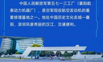中国人民解放军第五七一三工厂(襄阳航泰动力机器厂),隶属于空军装备部,是空军现役航空发动机的重要修理基地之一,工厂技术实力雄厚,具备多品种多型号装备修理能力。