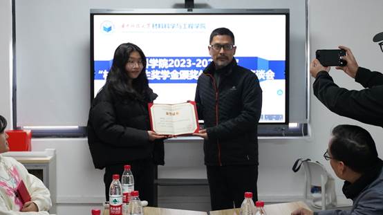 本次 “材韵”女生奖学金是由92级王燕校友倡议同班有志校友设立的锻压发展基金发起,旨在表彰在学术科研、社会实践、领导力及创新思维等方面展现卓越才能与不懈努力的女生。在介绍完“材韵”女生奖学金的起源以及参会校友后,获奖女生代表依次上台,从校友手中接过沉甸甸的荣誉证书,每个人的脸上都洋溢着自豪与喜悦之情,这是对她们辛勤付出的最好回馈。