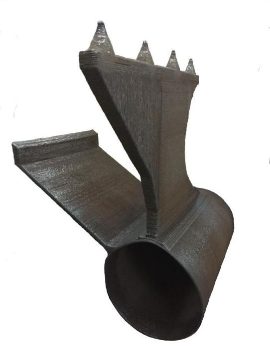 成果简介:电弧熔丝增材制造具有效率高、成本低、易于自动化的特点,是增材制造的重要发展方向之一。电弧熔丝增材制造是以金属丝材产生的电弧作为热源,熔化金属丝材实现金属堆积成形。科研团队根据电弧堆积成形的特点,研发出了专用设备与专用丝材,规划打印路径的软件,能实现复杂金属零件的增材制造。