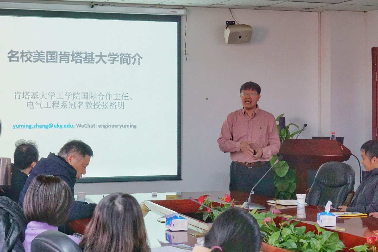 报告第二部分,张裕明教授向大家详细介绍了肯塔基大学和工学院的各个研究方向和团队情况,并介绍了我院和肯塔基大学合作的3+2本-硕/博项目,张教授表示希望能尽快签订协议,进一步开展交流合作。