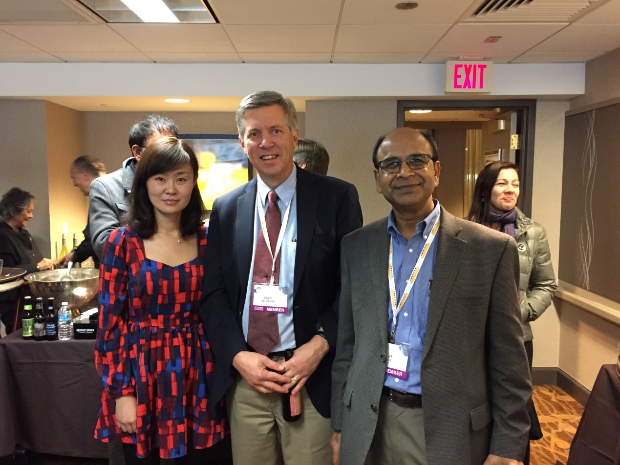 徐鸣教授(左)与美国橡树岭国家实验室碳材料项目负责人David Geohegen(中)、美国空军国家实验室碳材料项目负责人Roy Ajiot(右)合影