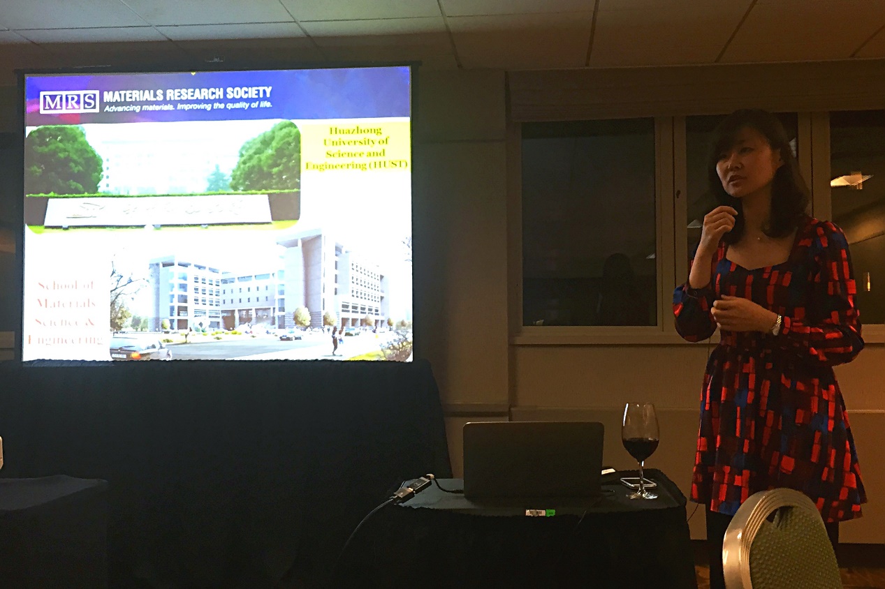 在分会举行的同时,材料学院于当地时间12月2日晚上六点,举办了学院研究成果介绍及人才引进推介会。《自然》杂志编委Adam Brotchie博士、美国材料学会会士(MRS Fellow)Yury Gogotsi教授、美国工程院院士Ray Baughman教授等近百名全球知名材料学家受邀出席。会上,材料学院代表徐鸣教授介绍了我校相关材料研究工作取得的进展及成果,并收到来自哈佛大学、麻省理工、巴黎高师、日本东北大学、马普研究所等院校及科研院所的合作意愿。推介会也向参会的材料业界青年才俊介绍了学校及学院的人才引进机制,大家在会后进行了热烈友好的交流。