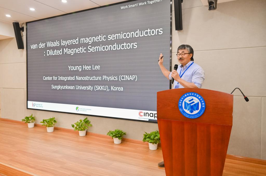大会特邀韩国科学技术翰林院院士、中国科学院外籍院士、韩国成均馆大学李永熙教授做题为“范德华层状磁性半导体:稀磁半导体”的专题报告。李永熙院士的研究工作主围绕着二维铁磁性材料展开,利用磁性元素钒掺杂的二维WSe2实现了室温铁磁性和低掺杂浓度下的栅压可调性。该成果为改变铁磁材料的居里温度开辟了新路径,有望进一步推动二维铁磁材料的研究与应用。