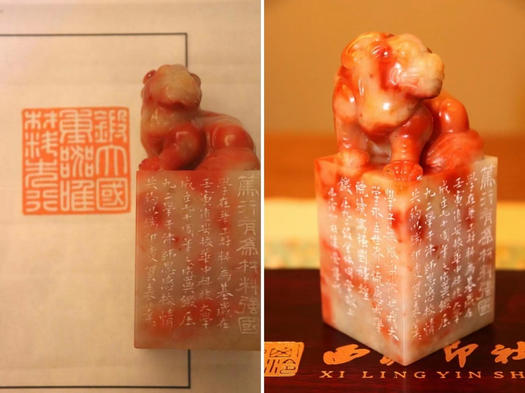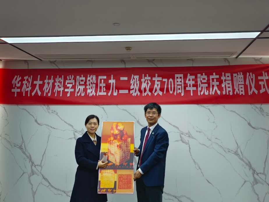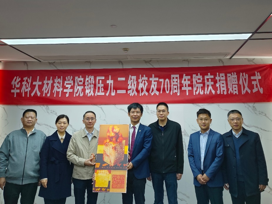 锻压九二级校友群策群力策划、构思、订制了学院70周年院庆纪念瑞印,印章由西泠印社知名镌刻家打造,采用独一无二的天然玉石雕琢而成。印章印面为“锻大国重器,唯材料先行”,边款表达了锻压九二级校友们“沐师恩感校情”的深厚情谊与“祝我大学永立世界一流,愿我学院续写强国辉煌”的美好祝愿。