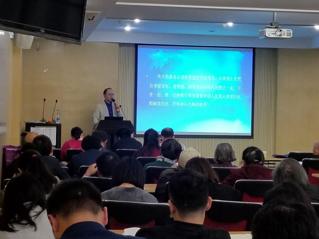 (通讯员 李婷)11月16日,材料学院举行集中学习十九大精神的专题辅导报告会,邀请马克思主义学院形势与政策教研中心主任、李翔副教授主讲,材料学院党委委员、全体教工(含退休)党员和学生党支部书记参与学习,报告会由材料学院党委副书记、副院长袁新华主持。