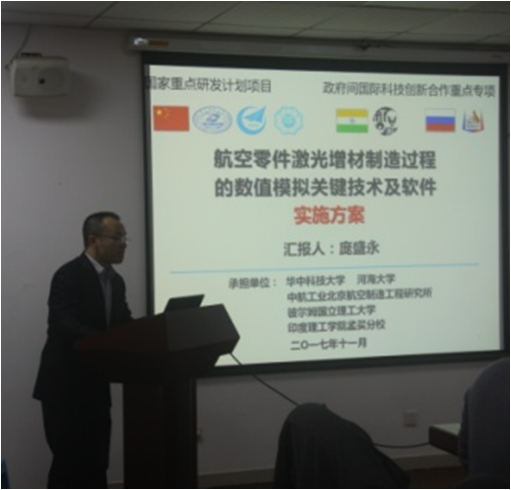 11月27日,由我校牵头承担的国家重点研发计划政府间国际科技创新合作重点专项“航空零件激光增材制造过程的数值模拟关键技术及软件”项目启动会在先进制造大楼召开。会议就项目实施方案进行了广泛讨论。湖北省科技厅、我校科学技术发展院、财务处、威廉williamhill、材料成形与模具技术国家重点实验室相关负责人、咨询专家、项目组成员及合作单位中航工业集团北京航空制造工程研究所、河海大学等代表参加了会议。会议由我校科学技术发展院威廉希尔办公室主任刘荣主持。