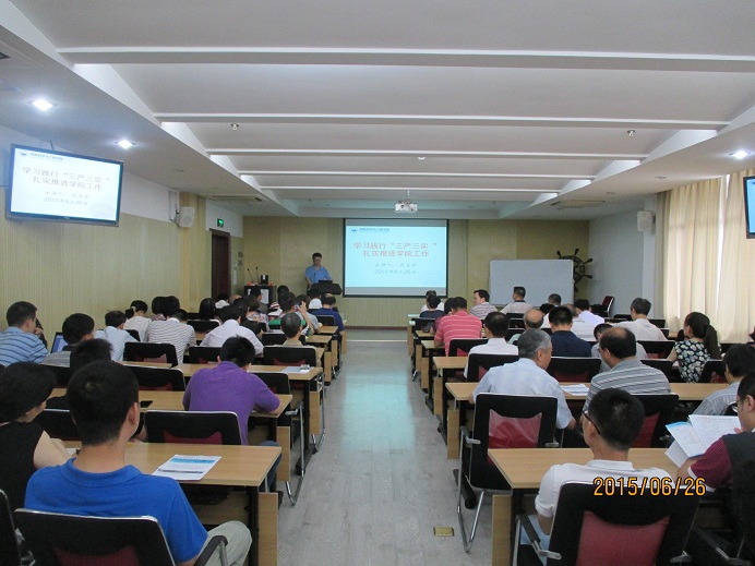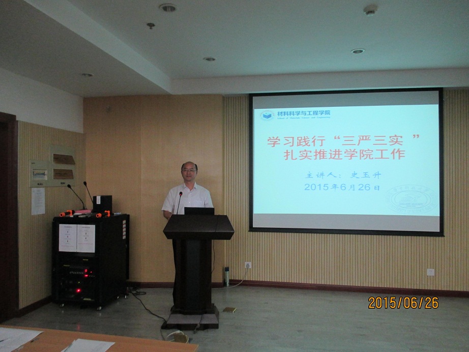 6月26日上午,材料学院在先进制造大楼西楼A306举行了“三严三实”专题学习报告会。院长黄云辉主持会议,学院全体在职教职工和学院退休教职工党支部书记、学院老年协会会长参加了会议。