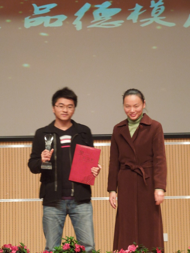11月23日晚,校第五届研究生品德模范颁奖典礼隆重举行。材料学院博士生陈朝吉获选。颁奖典礼上,院党总支副书记黄贝娜为陈朝吉颁奖。