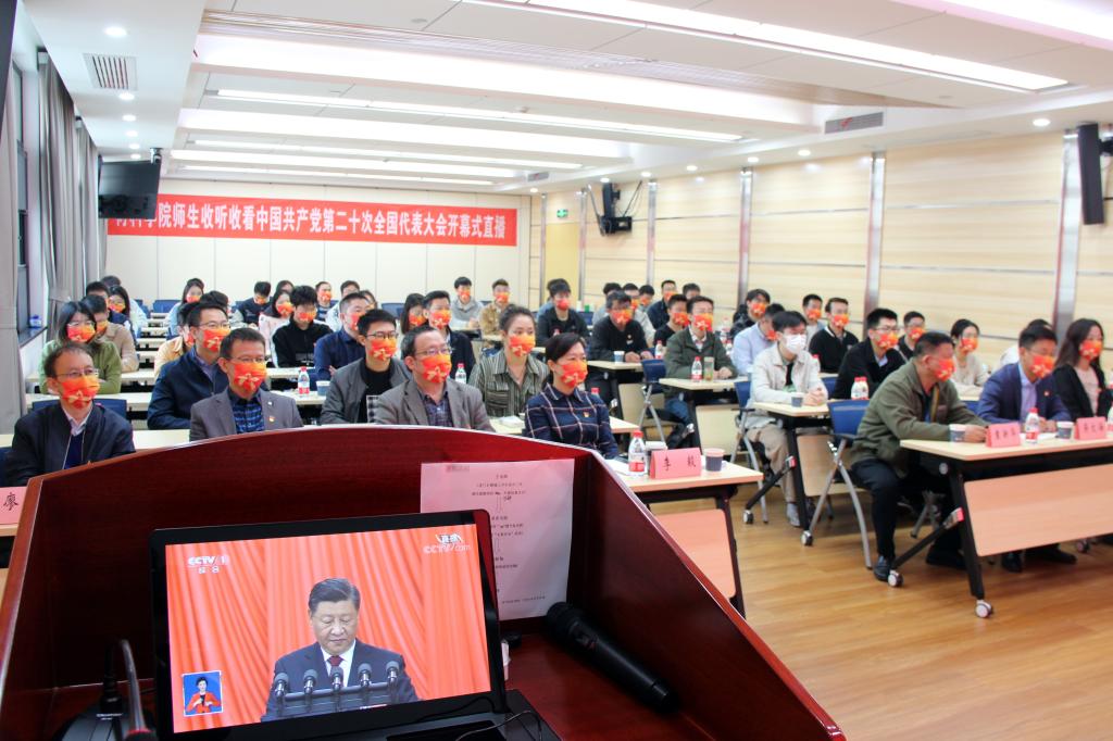 10月16日上午,中国共产党第二十次全国代表大会在北京人民大会堂隆重举行,材料学院第一时间组织学院党委委员、各教工党支部、学生党支部代表在先进制造大楼A308集中收看了党的二十大会议直播,学院广大教职员工也通过多种方式收看会议,认真学习大会报告。