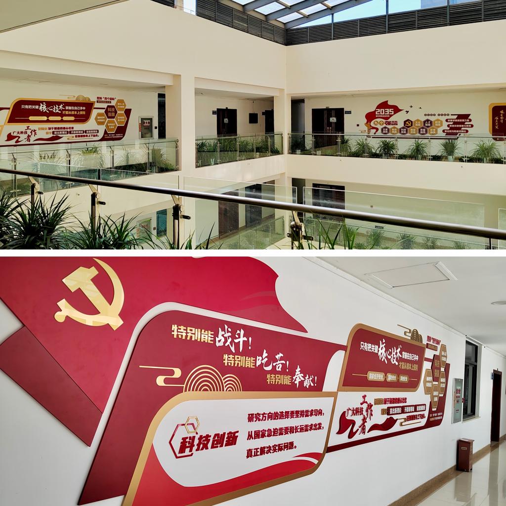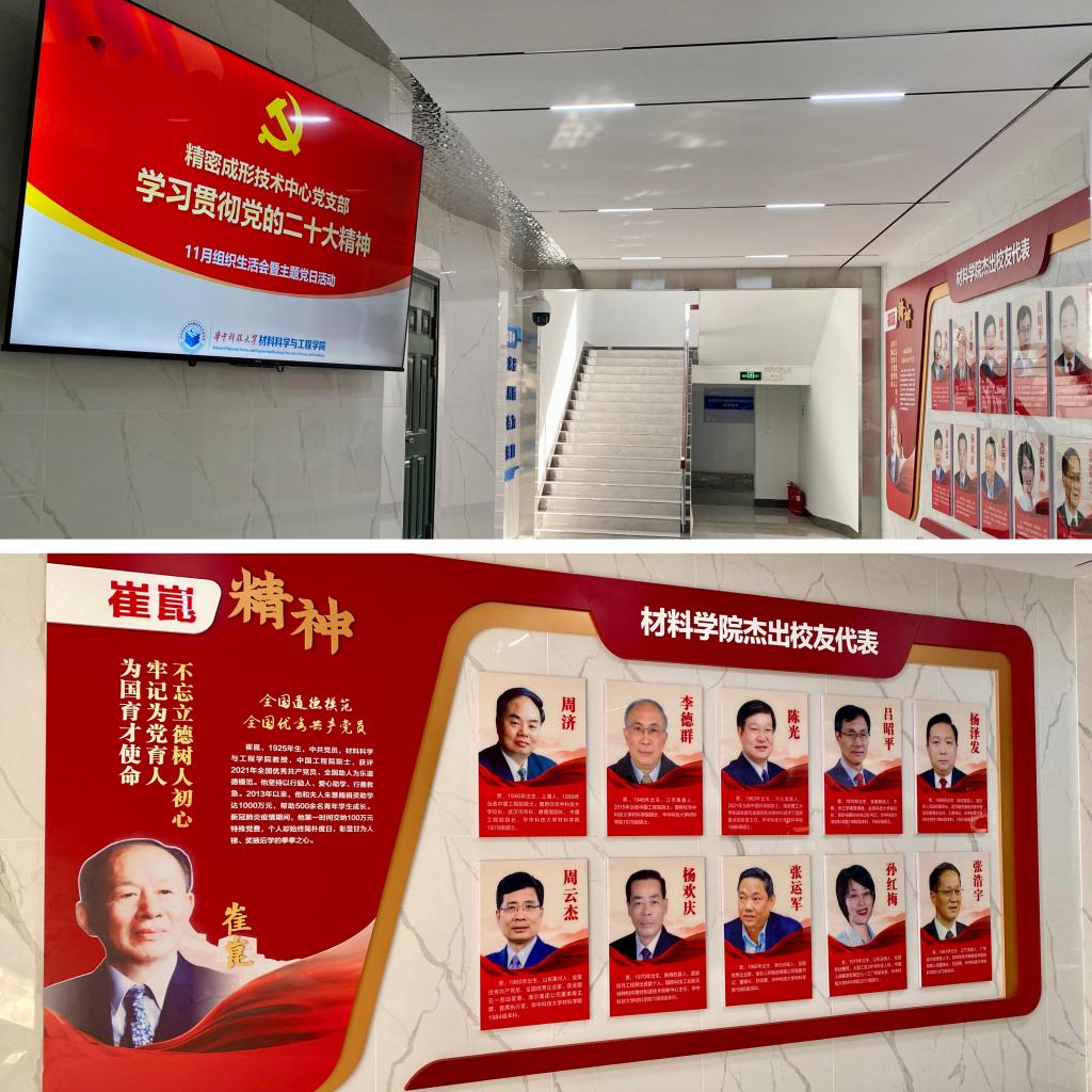 在阵地文化建设良好风气影响下,本项工作从学院发起、课题组共建,走向中心、课题组自主创新。此后,我院“全国党建工作样板支部”精密成形技术中心党支部,专门建立样板党支部工作间,对中心所在的东八楼整体进行楼宇文化改造;我院课题组纷纷塑造文化与科研氛围,今年9月,新金属材料研究中心结合实际工作主动谋划,自主自发建设课题组文化墙;10月,精密成形技术中心在东八楼大厅安装电子大屏,滚动播放学院重要新闻与宣传视频。