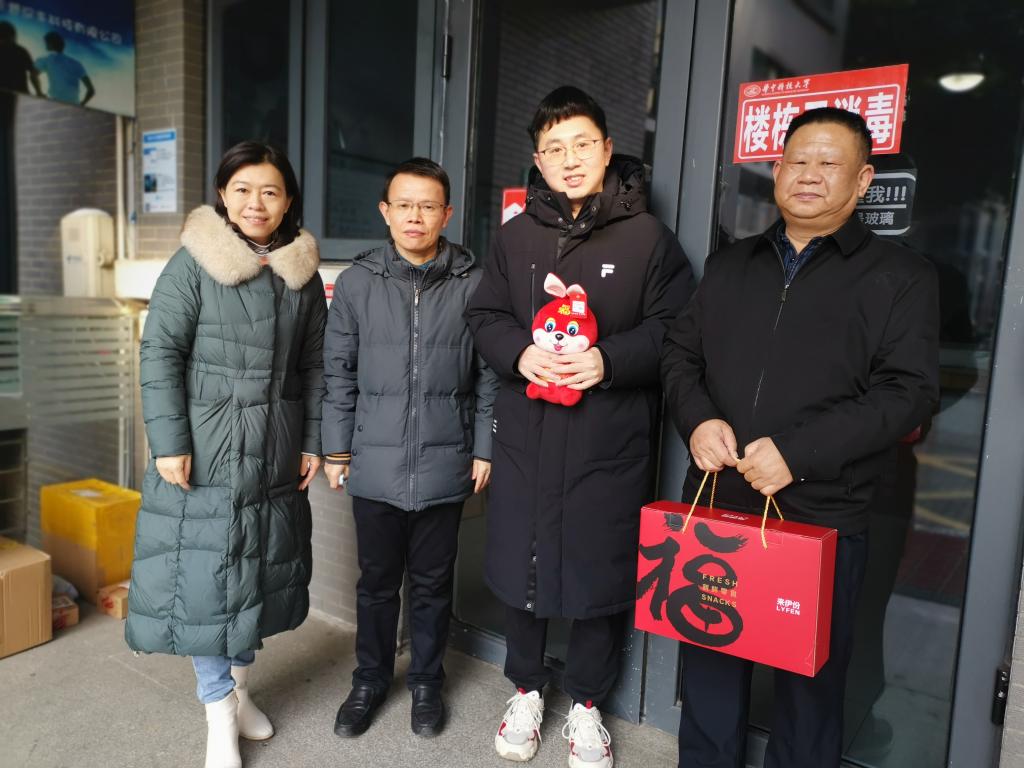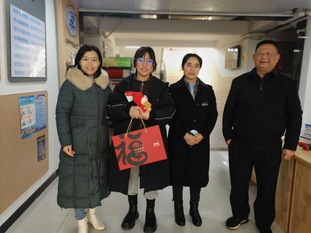 (通讯员 王曦)农历腊月二十五(1月16日)上午10时,材料学院党委书记李毅、党委副书记、副院长袁新华、副院长杨君友等院领导来到博士生公寓、韵苑学生公寓看望留校过春节的学生,关心学习生活情况,送去新春吉祥兔、春节慰问品,与学生一起共话新春,喜迎新年。