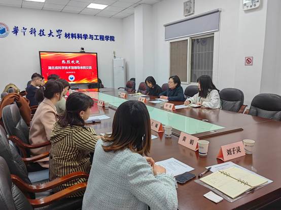 (通讯员:刘子灵)3月7日,湖北省科技馆副馆长周哲,公众服务部部长李文君,职员付遥一行来到材料学院焊接实验室A217进行座谈,材料学院党委书记李毅参加调研。